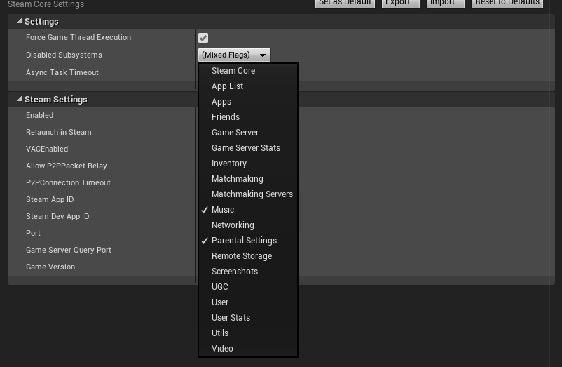 - Added DisabledSubsystems to Plugin Settings