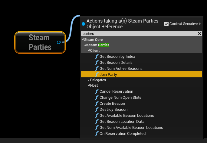 The client side of this operation - seeing and following beacons - can also be managed by your game. Using ISteamParties::GetNumActiveBeacons and ISteamParties::GetBeaconDetails, your game can get a list of beacons from other users that are currently active in locations relevant to the current user. If the user desires, call ISteamParties::JoinParty to "follow" one of those beacons.