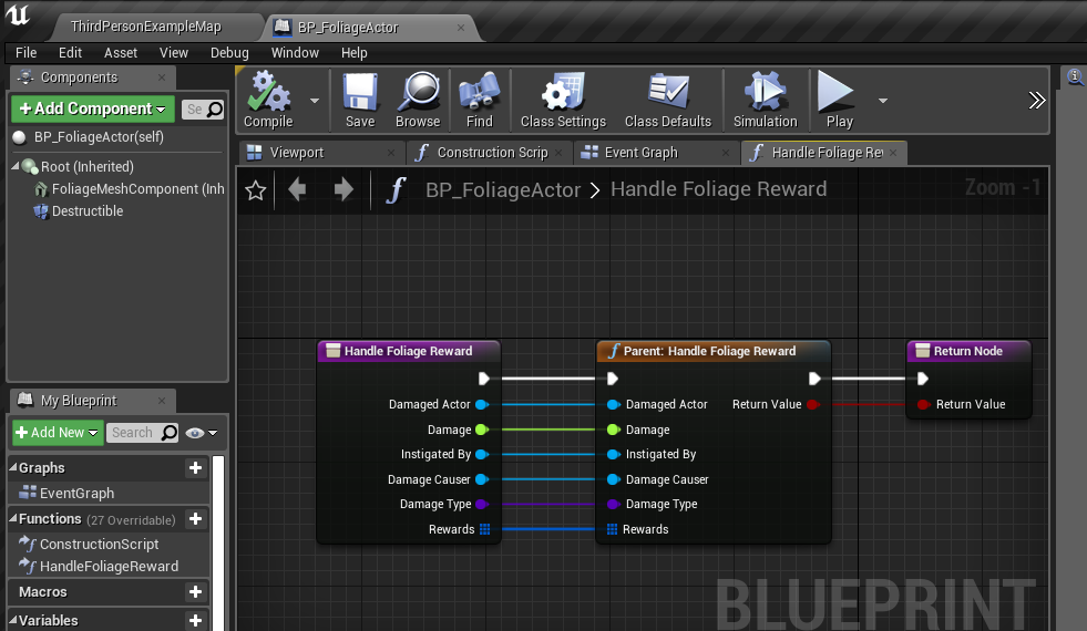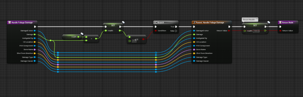 OPEN THE "BP_MASTERMELEEWEAPON" BLUEPRINT (/BLUEPRINTS/HOLDABLES/BP_MASTERMELEEWEAPON) AND MODIFY THE "GIVE DAMAGE ONCE" FUNCTION TO THE EXAMPLE BELOW