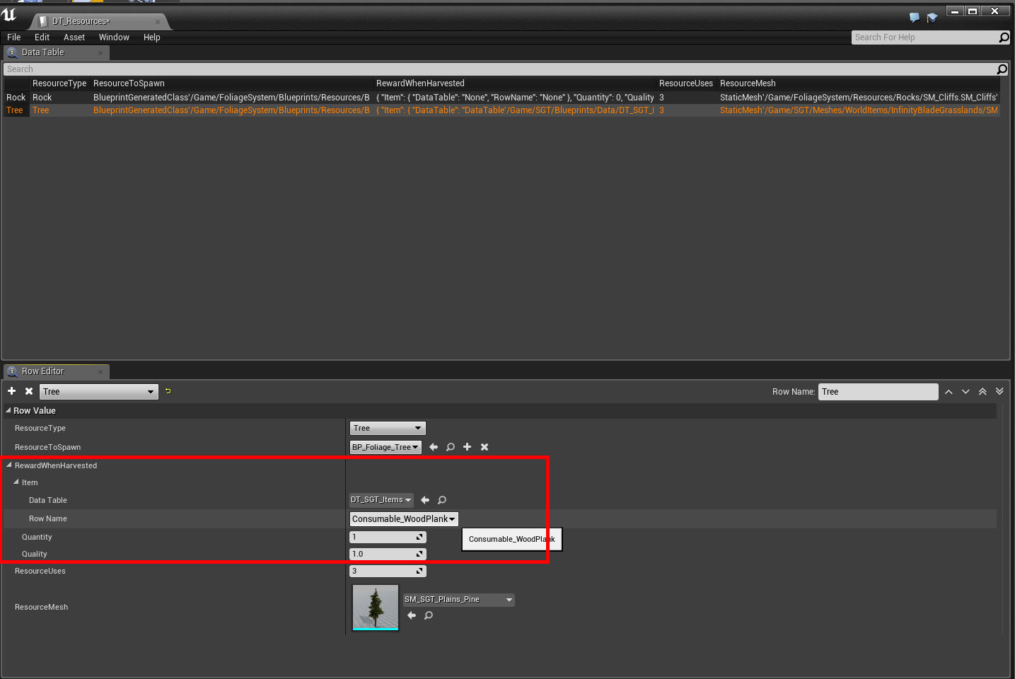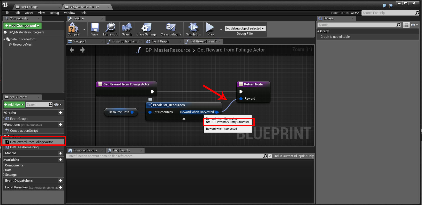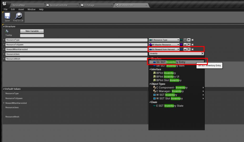 change the RewardWhenHarvested struct type to "Str_SGT_Inventory_Entry"