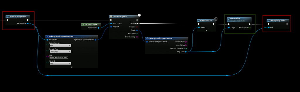 - You have to Construct a Polly Audio object and pass this into the Request information before calling "Synthesize Speech"